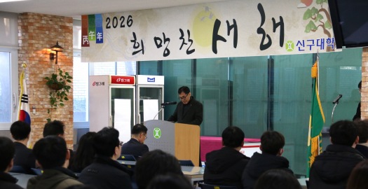 우리 대학(총장 이숭겸)이 금일 5일 미래창의관 학생식당에서 2026년 시무식 행사를 거행했다. 식순은 국민의례, 설립자 우촌 이종익 박사를 기리는 묵념, 외부기관 표창 격려금 전달, 신년사, 신임 및 연임 보직자...